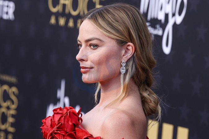 SANTA MONICA, LOS ANGELES, CALIFORNIA, USA - JANUARY 14: Margot Robbie wearing custom Balmain arrives at the 29th Annual Critics' Choice Awards held at The Barker Hangar on January 14, 2024 in Santa Monica, Los Angeles, California, United States., Credit:Xavier Collin / Avalon