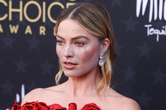 SANTA MONICA, LOS ANGELES, CALIFORNIA, USA - JANUARY 14: Margot Robbie wearing custom Balmain arrives at the 29th Annual Critics' Choice Awards held at The Barker Hangar on January 14, 2024 in Santa Monica, Los Angeles, California, United States., Credit:Xavier Collin / Avalon