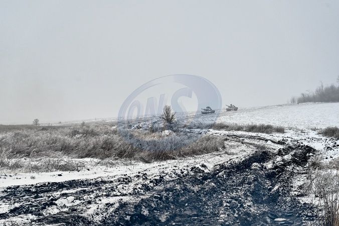 ZAPORIZHZHIA SECTOR, UKRAINE - JANUARY 11, 2024 - A T-72 tank is seen during special training of the soldiers of the 128th separate mountain assault brigade of the Zakarpattia Army of the Armed Forces of Ukraine to maintain professional skills, Zaporizhzhia sector, south-eastern Ukraine., Credit:Dmytro Smolienko / Avalon