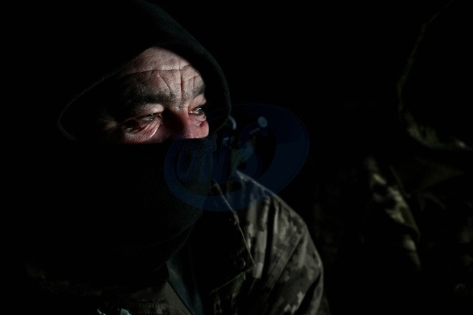 ZAPORIZHZHIA SECTOR, UKRAINE - JANUARY 11, 2024 - A soldier of the 128th Separate Mountain Assault Brigade of the Zakarpattia Land Forces of the Armed Forces of Ukraine warms up in a tent during special training exercises to maintain professional skills involving T-72 tanks, Zaporizhzhia sector, south-eastern Ukraine., Credit:Dmytro Smolienko / Avalon