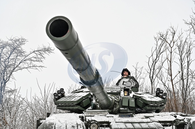 ZAPORIZHZHIA SECTOR, UKRAINE - JANUARY 11, 2024 - A T-72 tank is seen during special training of the soldiers of the 128th separate mountain assault brigade of the Zakarpattia Army of the Armed Forces of Ukraine to maintain professional skills, Zaporizhzhia sector, south-eastern Ukraine., Credit:Dmytro Smolienko / Avalon