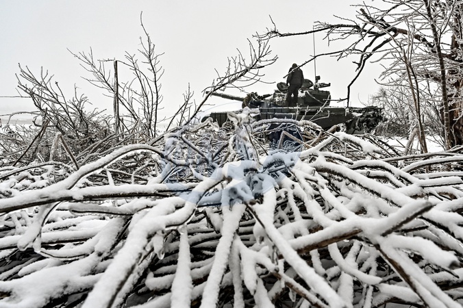 ZAPORIZHZHIA SECTOR, UKRAINE - JANUARY 11, 2024 - A T-72 tank is seen during special training of the soldiers of the 128th separate mountain assault brigade of the Zakarpattia Army of the Armed Forces of Ukraine to maintain professional skills, Zaporizhzhia sector, south-eastern Ukraine., Credit:Dmytro Smolienko / Avalon