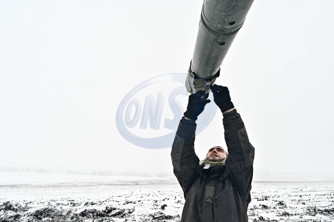 ZAPORIZHZHIA SECTOR, UKRAINE - JANUARY 11, 2024 - A soldier of the 128th Separate Mountain Assault Brigade of the Zakarpattia Land Forces of the Armed Forces of Ukraine is seen during special training exercises to maintain professional skills involving T-72 tanks, Zaporizhzhia sector, south-eastern Ukraine., Credit:Dmytro Smolienko / Avalon