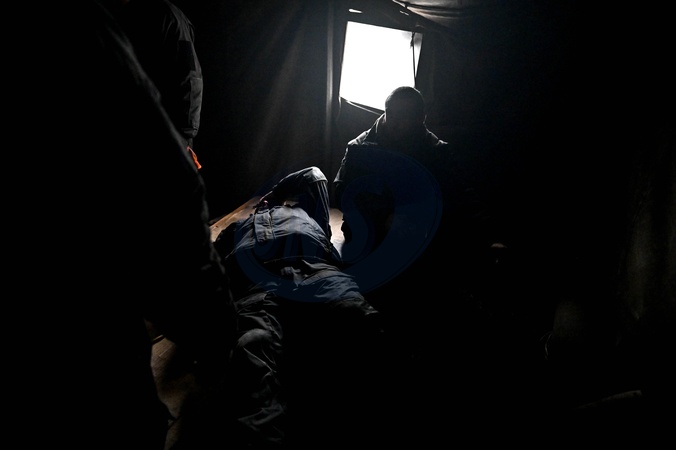 ZAPORIZHZHIA SECTOR, UKRAINE - JANUARY 11, 2024 - Soldiers of the 128th Separate Mountain Assault Brigade of the Zakarpattia Land Forces of the Armed Forces of Ukraine warm up in a tent during special training exercises to maintain professional skills involving T-72 tanks, Zaporizhzhia sector, south-eastern Ukraine., Credit:Dmytro Smolienko / Avalon