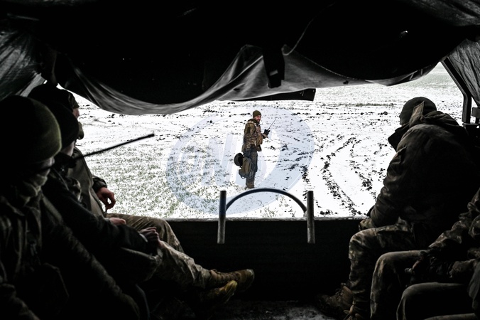 ZAPORIZHZHIA SECTOR, UKRAINE - JANUARY 11, 2024 - Soldiers of the 128th Separate Mountain Assault Brigade of the Zakarpattia Land Forces of the Armed Forces of Ukraine warm up in a tent during special training exercises to maintain professional skills involving T-72 tanks, Zaporizhzhia sector, south-eastern Ukraine., Credit:Dmytro Smolienko / Avalon