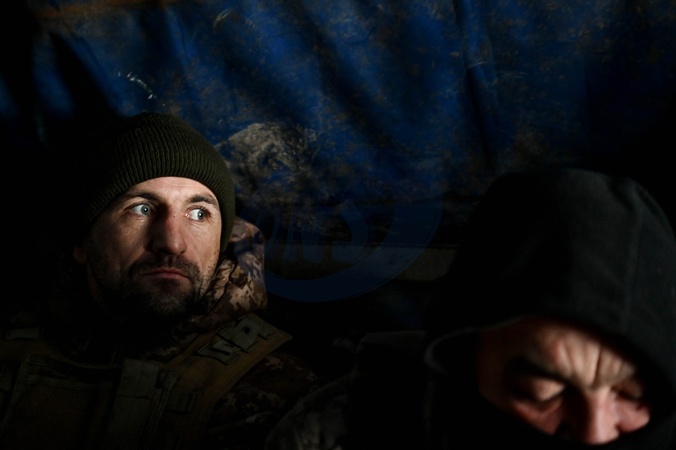 ZAPORIZHZHIA SECTOR, UKRAINE - JANUARY 11, 2024 - Soldiers of the 128th Separate Mountain Assault Brigade of the Zakarpattia Land Forces of the Armed Forces of Ukraine warm up in a tent during special training exercises to maintain professional skills involving T-72 tanks, Zaporizhzhia sector, south-eastern Ukraine., Credit:Dmytro Smolienko / Avalon