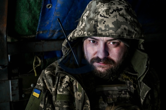 ZAPORIZHZHIA SECTOR, UKRAINE - JANUARY 11, 2024 - A soldier of the 128th Separate Mountain Assault Brigade of the Zakarpattia Land Forces of the Armed Forces of Ukraine warms up in a tent during special training exercises to maintain professional skills involving T-72 tanks, Zaporizhzhia sector, south-eastern Ukraine., Credit:Dmytro Smolienko / Avalon