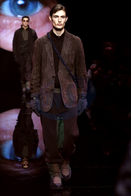 Męska kolekcja gotowych do noszenia Emporio Armani na jesień/zimę 2024 pokaz podczas Tygodnia Mody w Mediolanie