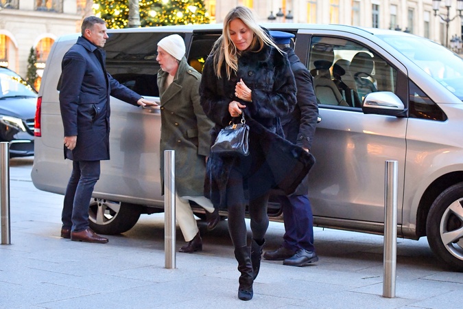 W dniu swoich 50. urodzin Kate Moss w towarzystwie swojego towarzysza Nikolaia von Bismarcka wraca do hotelu Ritz po przymiarki na Paryski Tydzień Mody