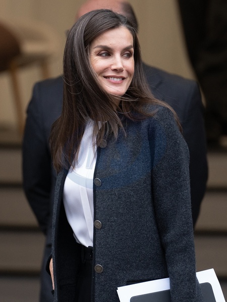 La reine Letizia d'Espagne à la sortie de la première réunion de l'année avec l'association "Spanish Association Against Cancer (AECC)" à Madrid