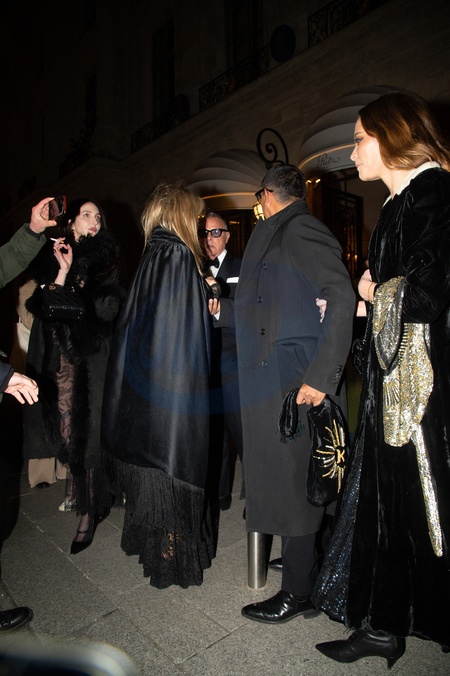 Le jour de son 50ème anniversaire Kate Moss, accompagnée de ses amis, sort de l'hôtel Ritz pour se rendre au restaurant "Laurent" à Paris, France, le 16 janvier 2024. On the day of her 50th birthday Kate Moss, accompanied by her friends, leaves the Ritz hotel to go to the "Laurent" restaurant in Paris, France, on January 16, 2024.