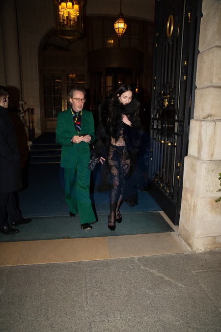 Le jour de son 50ème anniversaire Kate Moss, accompagnée de son compagnon Nikolai von Bismarck et ses amis, sort de l’hôtel Ritz pour se rendre au restaurant "Laurent" à Paris