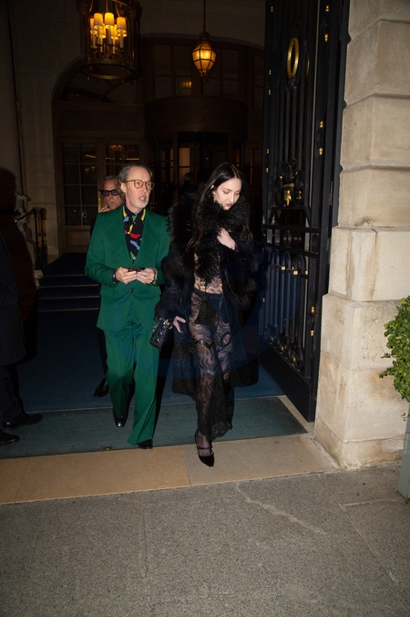 Le jour de son 50ème anniversaire Kate Moss, accompagnée de son compagnon Nikolai von Bismarck et ses amis, sort de l’hôtel Ritz pour se rendre au restaurant "Laurent" à Paris