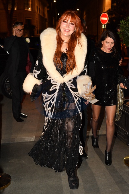 Charlotte Tilbury - Le jour de son 50ème anniversaire Kate Moss, accompagnée de son compagnon Nikolai von Bismarck, sa fille Lila Grace Moss-Hack et ses amis, arrive au restaurant Laurent à Paris, France, le 16 janvier 2024. On the day of her 50th birthday Kate Moss, accompanied by her companion Nikolai von Bismarck, her daughter Lila Grace Moss-Hack and her friends, arrives at the Laurent restaurant in Paris, France, on January 16, 2024.