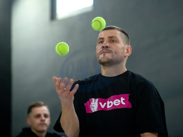KYIV, UKRAINE - JANUARY 16, 2024 - Boxer, WBO International lightweight champion Denys Berinchyk juggles tennis balls during an open training session, Kyiv, capital of Ukraine., Credit:Pavlo_Bagmut / Avalon