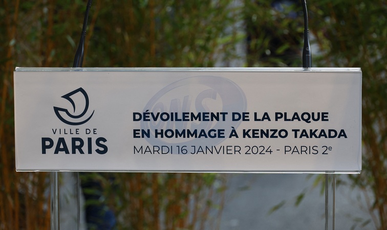 Z - Dévoilement d'une plaque en hommage à Kenzo Takada saluant l'héritage du créateur japonais décédé en 2020 devant la Galerie Vivienne à Paris le 16 janvier 2024. © Coadic Guirec/Bestimage Unveiling of a plaque in tribute to Kenzo Takada saluting the legacy of the Japanese designer who died in 2020 in front of the Galerie Vivienne in Paris on January 16, 2024.