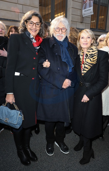 Pierre Richard et sa femme Ceyla Lacerda et Ruth Obadia - Dévoilement d'une plaque en hommage à Kenzo Takada saluant l'héritage du créateur japonais décédé en 2020 devant la Galerie Vivienne à Paris le 16 janvier 2024. © Coadic Guirec/Bestimage Unveiling of a plaque in tribute to Kenzo Takada saluting the legacy of the Japanese designer who died in 2020 in front of the Galerie Vivienne in Paris on January 16, 2024.