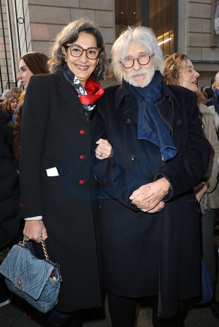 Pierre Richard et sa femme Ceyla Lacerda - Dévoilement d'une plaque en hommage à Kenzo Takada saluant l'héritage du créateur japonais décédé en 2020 devant la Galerie Vivienne à Paris le 16 janvier 2024. © Coadic Guirec/Bestimage Unveiling of a plaque in tribute to Kenzo Takada saluting the legacy of the Japanese designer who died in 2020 in front of the Galerie Vivienne in Paris on January 16, 2024.
