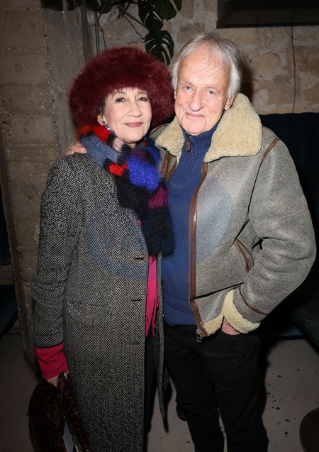 Caroline Loeb et Dave - Dévoilement d'une plaque en hommage à Kenzo Takada saluant l'héritage du créateur japonais décédé en 2020 devant la Galerie Vivienne à Paris le 16 janvier 2024. © Coadic Guirec/Bestimage Unveiling of a plaque in tribute to Kenzo Takada saluting the legacy of the Japanese designer who died in 2020 in front of the Galerie Vivienne in Paris on January 16, 2024.