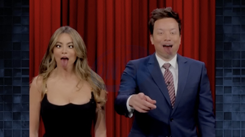 Pictures MUST credit: NBC Modern Family TV actress Sofia Vergara goes face to face with USA chat show host Jimmy Fallon — using TikTok filters. The 51-year-old Colombian-born star was Fallon's guest and agreed to take part in one of the wacky games he sometimes invites stars to take part in. This one involved Sofia and Fallon, 49, each holding a mouthful of water, having their faces put through funny TikTok photo filters— and then trying not to laugh. Vergara, playing up to her bossy role of Gloria Delgado-Pritchett in Modern Family, managed to keep a straight face for all three attempts but not before playfully hammering Fallon for the game which she branded "stupid.” Fallon called it the Funny Face Filter Challenge. Picture supplied by JLPPA