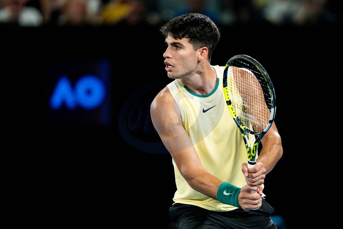 Carlos Alcaraz (ESP) - Tennis - 2024 Australian Open au Melbourne Park de Melbourne le 16 janvier 2024. - Tennis - 2024 Australian Open Melbourne, Australia on january 16, 2024.