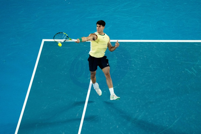 Carlos Alcaraz (ESP) - Tennis - 2024 Australian Open au Melbourne Park de Melbourne le 16 janvier 2024. - Tennis - 2024 Australian Open Melbourne, Australia on january 16, 2024.