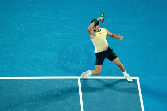 Carlos Alcaraz (ESP) - Tennis - 2024 Australian Open au Melbourne Park de Melbourne le 16 janvier 2024. - Tennis - 2024 Australian Open Melbourne, Australia on january 16, 2024.