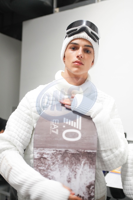 Emporio Armani Model On Backstage, Men, Milan Fashion Week 2024 Man Ready To Wear For Fall Winter, Fashion Show , Pret A Porter, Man, Herbst Winter Autumn Italyfashion outlook beauty face hair eyes makeup menMILMFW24, Credit:www.fashionpps.com / Avalon
