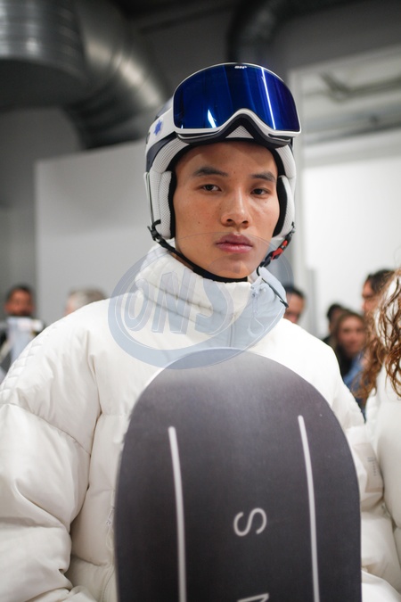 Emporio Armani Model On Backstage, Men, Milan Fashion Week 2024 Man Ready To Wear For Fall Winter, Fashion Show , Pret A Porter, Man, Herbst Winter Autumn Italyfashion outlook beauty face hair eyes makeup menMILMFW24, Credit:www.fashionpps.com / Avalon