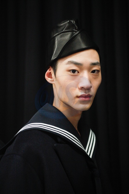 Emporio Armani Model On Backstage, Men, Milan Fashion Week 2024 Man Ready To Wear For Fall Winter, Fashion Show , Pret A Porter, Man, Herbst Winter Autumn Italyfashion outlook beauty face hair eyes makeup menMILMFW24, Credit:www.fashionpps.com / Avalon