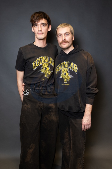 Pierwszy rząd męskiej kolekcji gotowej do noszenia Egonlab na jesień/zimę 2024 podczas Paris Fashion Week (PFW) w Palais de Tokyo w Paryżu.