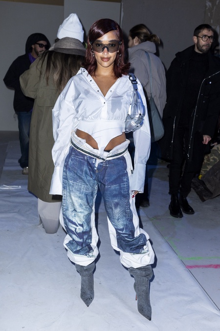 Front row du défilé BLUEMARBLE Collection Homme Prêt-à-Porter Automne/Hiver 2024 lors de la Fashion Week de Paris (PFW) rue de Rivoli à Paris