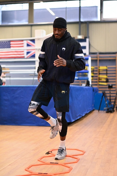 Boxer Bakary Samake trenuje w sali bokserskiej IBC w Champs sur Marne.