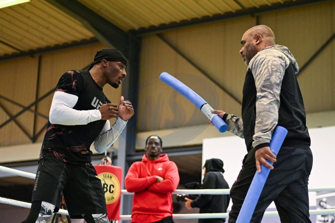 Boxer Bakary Samake trenuje w sali bokserskiej IBC w Champs sur Marne.