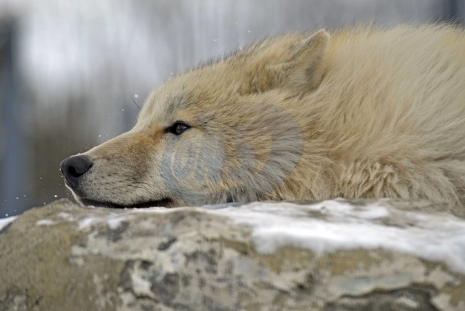 VINNYTSIA, UKRAINE - JANUARY 16, 2024 - Arctic wolf is seen in the enclosure of the Podilskyi Zoo, Vinnytsia, west-central Ukraine., Credit:Oleksandr Lapin / Avalon