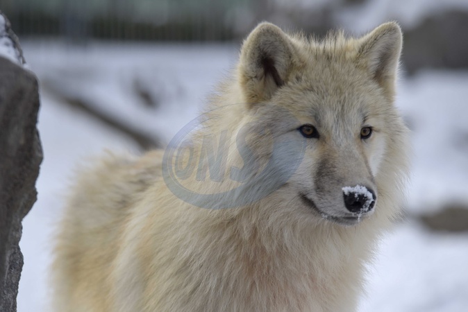 VINNYTSIA, UKRAINE - JANUARY 16, 2024 - Arctic wolf is seen in the enclosure of the Podilskyi Zoo, Vinnytsia, west-central Ukraine., Credit:Oleksandr Lapin / Avalon