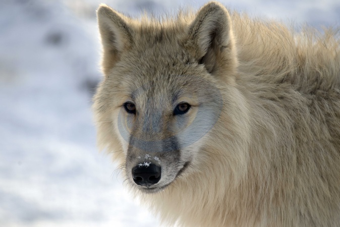 VINNYTSIA, UKRAINE - JANUARY 16, 2024 - Arctic wolf is seen in the enclosure of the Podilskyi Zoo, Vinnytsia, west-central Ukraine., Credit:Oleksandr Lapin / Avalon