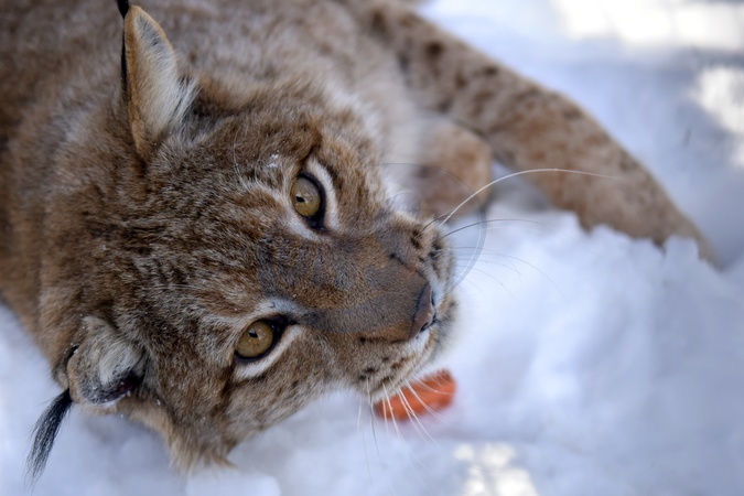 VINNYTSIA, UKRAINE - JANUARY 16, 2024 - Eurasian lynx is seen in the enclosure of the Podilskyi Zoo, Vinnytsia, west-central Ukraine., Credit:Oleksandr Lapin / Avalon