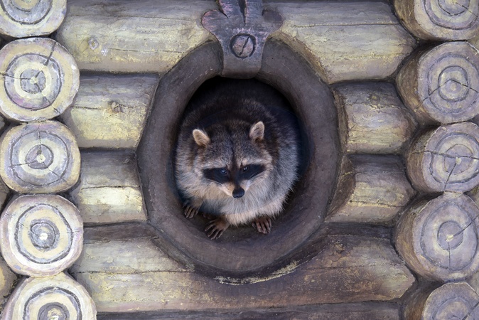 VINNYTSIA, UKRAINE - JANUARY 16, 2024 - Common racoon (Procyon lotor) is seen in the enclosure of the Podilskyi Zoo, Vinnytsia, west-central Ukraine., Credit:Oleksandr Lapin / Avalon