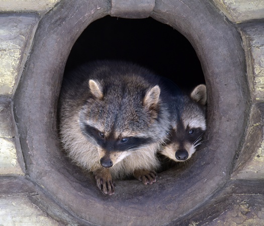 VINNYTSIA, UKRAINE - JANUARY 16, 2024 - Common racoons (Procyon lotor) are seen in the enclosure of the Podilskyi Zoo, Vinnytsia, west-central Ukraine., Credit:Oleksandr Lapin / Avalon