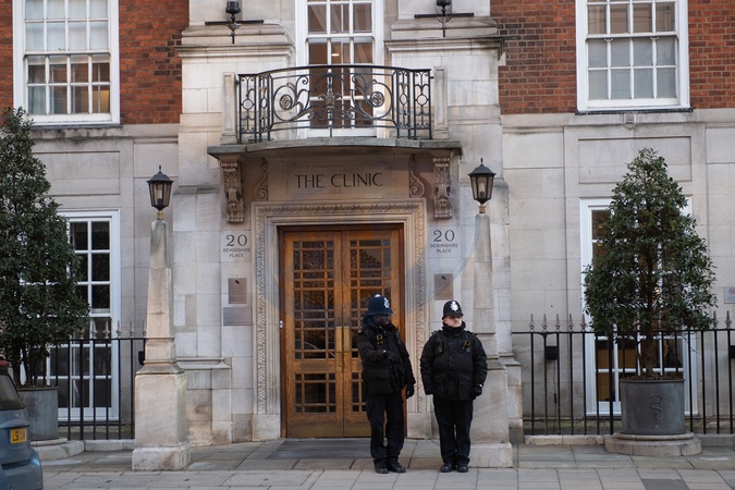 A general view of Metropolitan Police officers stationed outside of The London Clinic, Marylebone in London, England, UK on Thursday 18 January, 2024 where Catherine The Princess of Wales is recovering after undergoing an operation on her abdomen. Kensington Palace released a statement saying the Princess of Wales will be staying at the hospital for a period of 10-14 days to recover from the operation and that she would not resume engagements until after Easter., Credit:Justin Ng / Avalon