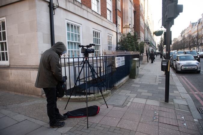 A general view of a cameraman filming Metropolitan Police officers stationed outside of The London Clinic, Marylebone in London, England, UK on Thursday 18 January, 2024 where Catherine The Princess of Wales is recovering after undergoing an operation on her abdomen. Kensington Palace released a statement saying the Princess of Wales will be staying at the hospital for a period of 10-14 days to recover from the operation and that she would not resume engagements until after Easter., Credit:Justin Ng / Avalon