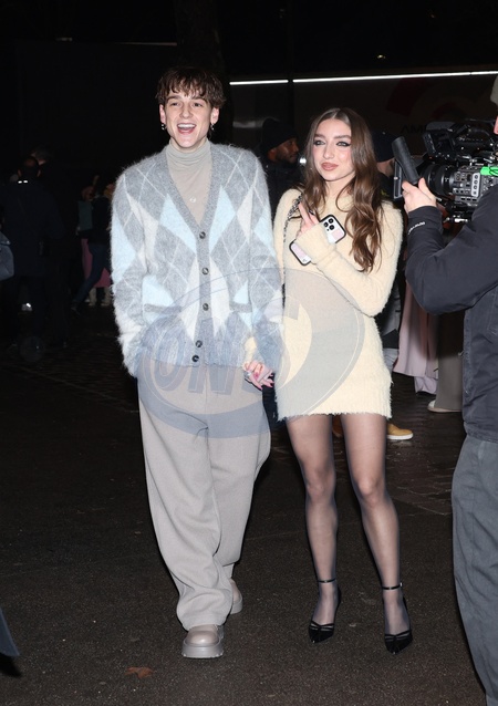 Zoi Lerma et Baron Schoenvogel - Arrivées des personnalités au défilé AMI collection homme automne/hiver 2024/2025 lors de la fashion week à Paris (PFW) le 19 janvier 2024. © Denis Guignebourg / Bestimage AMI - Alexandre Mattiussi Menswear Fall/Winter 2024-2025 show as part of Paris Fashion Week on January 18, 2024 in Paris, France.