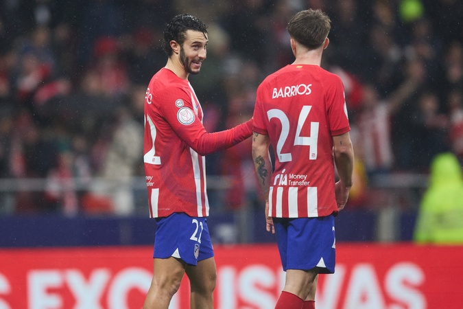 L'Atletico de Madrid bat le Real de Madrid (4-2) lors des huitièmes de finale de la Copa del Rey, la Coupe d'Espagne à Madrid le 18 janvier 2024. Mario Hermoso of Atletico de Madrid (L) talks to Pablo Barrios of Atletico de Madrid (R) during the King's Cup Quarter Final match between Atletico de Madrid and Real Madrid CF at Civitas Metropolitano on January 18, 2024 in Madrid, Spain (Photo by: Alvaro Medranda/ Panoramic)