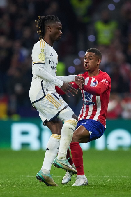 L'Atletico de Madrid bat le Real de Madrid (4-2) lors des huitièmes de finale de la Copa del Rey, la Coupe d'Espagne à Madrid le 18 janvier 2024. Samuel Lino of Atletico de Madrid battles for the ball with Eduardo Camavinga of Real Madrid CF (R) during the King's Cup Quarter Final match between Atletico de Madrid and Real Madrid CF at Civitas Metropolitano on January 18, 2024 in Madrid, Spain (Photo by: Alvaro Medranda/ Panoramic)