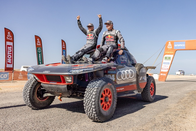 204 SAINZ Carlos (spa), CRUZ Lucas (spa), Team Audi Sport, Audi RS Q E-Tron E2, FIA Ultimate, FIA W2RC, - L'Espagnol C.Sainz remporte le Dakar 2024 devant le Belge G.De Mevius et le Français S.Loeb à Yanbu (Arabie Saoudite), le 19 janvier 2024. © Florent Gooden / Panoramic / Bestimage The Spanish C.Sainz wins the 2024 Dakar ahead of the Belgian G.de Mevius and the Frenchman S.Loeb in Yanbu (Saudi Arabia), January 19th, 2024.