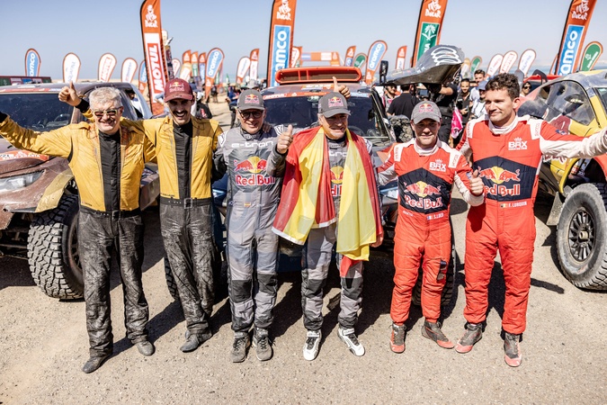 Hiszpan Carlos Sainz wygrywa Dakar 2024 przed Belgiem Guillaume De Meviusem i Francuzem Sébastienem Loebem