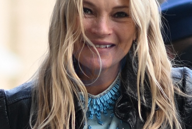 Kate Moss arrive à l'hôtel "Ritz" lors de la Fashion Week de Paris (PFW), le 19 janvier 2024. Kate Moss arrives at the "Ritz” hotel during Paris Fashion Week (PFW), January 19, 2024.