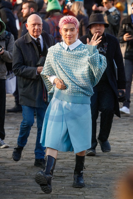 Gwiazdy przy wyjściu z pokazu kolekcji Dior Men's Ready-to-Wear na jesień/zimę 2024-2025 podczas Tygodnia Mody w Paryżu