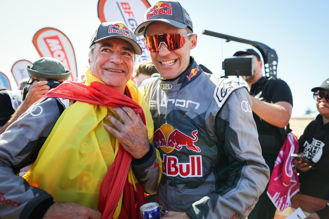 SAINZ Carlos (spa), Team Audi Sport, Audi RS Q E-Tron E2, FIA Ultimate, FIA W2RC, EKSTROM Mattias (swe), Team Audi Sport, Audi RS Q E-Tron E2, FIA Ultimate, FIA W2RC, - L'Espagnol C.Sainz remporte le Dakar 2024 devant le Belge G.De Mevius et le Français S.Loeb à Yanbu (Arabie Saoudite), le 19 janvier 2024. © Antonin Vincent / Panoramic / Bestimage The Spanish C.Sainz wins the 2024 Dakar ahead of the Belgian G.de Mevius and the Frenchman S.Loeb in Yanbu (Saudi Arabia), January 19th, 2024.